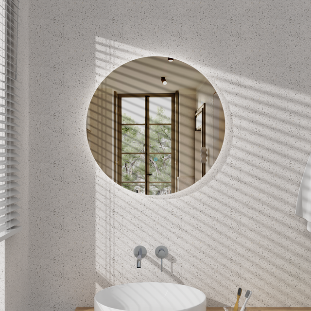 Сучасне кругле дзеркало зі світлодіодним LED підсвічуванням діаметром 58 см з високоякісного скла товщиною 4 мм. Шліфовані та поліровані краї.